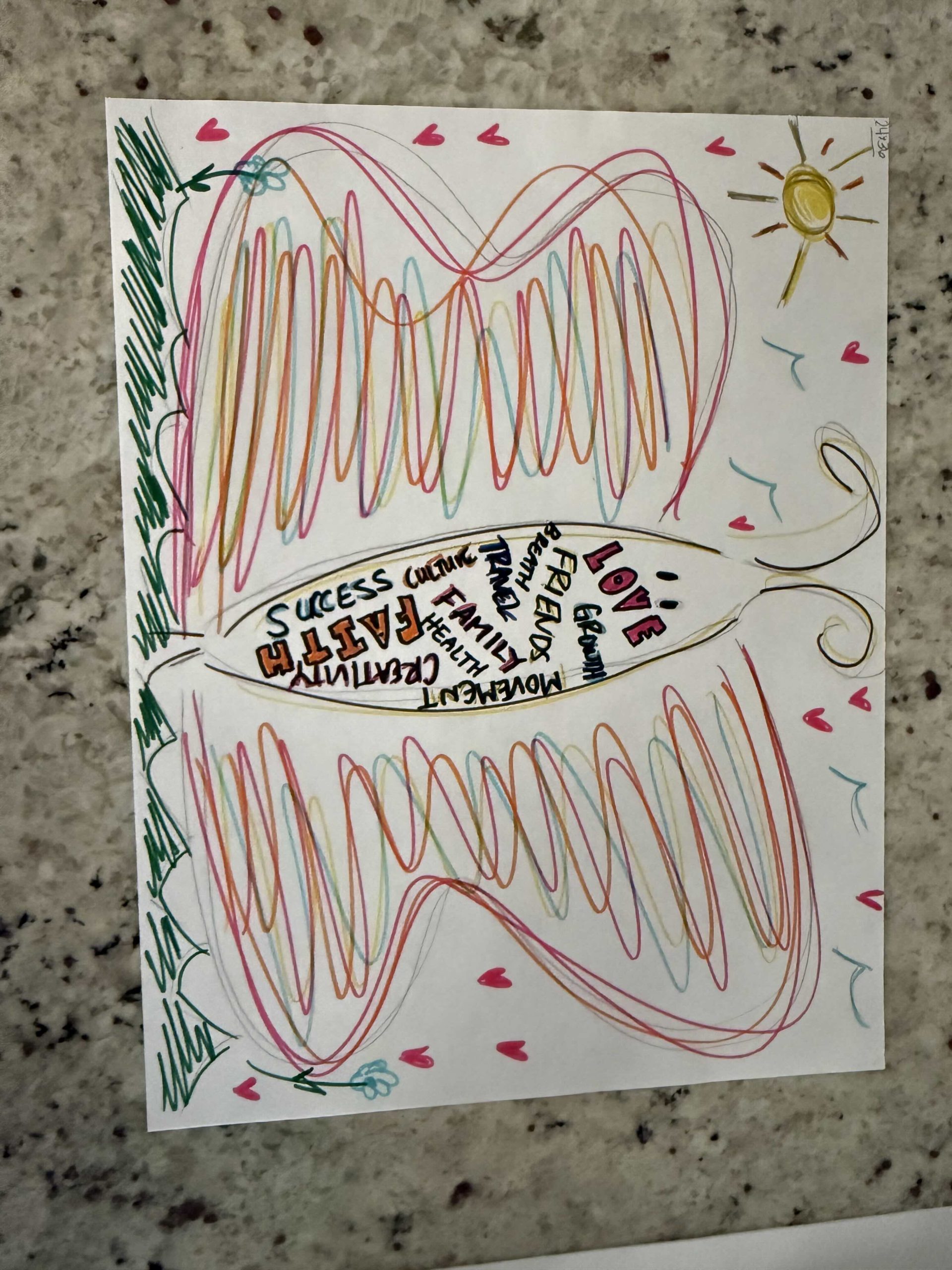 The intentional cuttings in her work depict the brokenness we have overcome, serving as a testament to resilience and renewal.